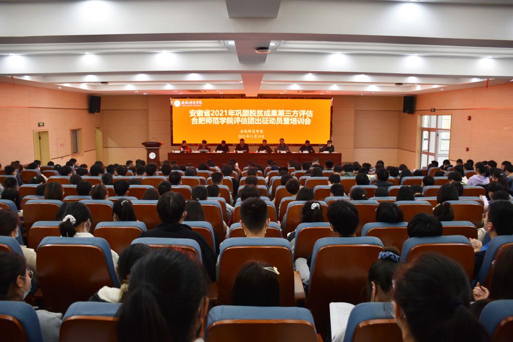 本网讯 11月18日下午,学院在锦绣校区学术报告厅举行安徽省2021年巩固脱贫成果第三方评估动员暨培训会。院党委书记徐成钢、院党委副书记吴昕春、省乡村振兴局考核评估处副处长胡满意及学院相关单位负责人、参与今年第三方评估的全体师生参加会议。会议由吴昕春主持。