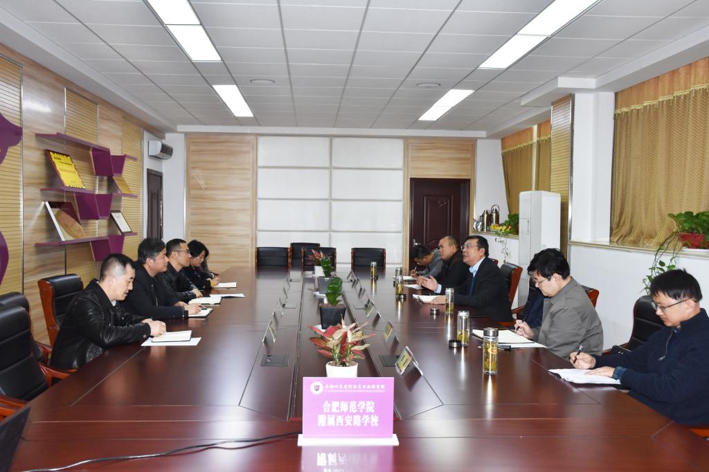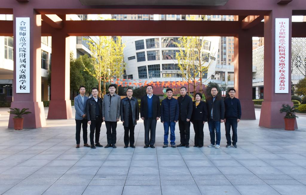 本网讯 11月10日下午,院党委书记徐成钢、党委副书记吴昕春带领组织部、人事处、教务处和合肥基础教育研究院负责人深入附属西安路学校调研慰问。附属西安路学校校长徐年乐,副校长徐瑞、陆学莉、沈章军热情接待了徐成钢一行。