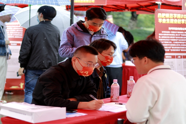 本网讯 为深入贯彻落实党中央、国务院和省委、省政府“六稳”“六保”决策部署,充分发挥校园招聘会在促进毕业生就业方面主渠道作用,助力2022届毕业生早就业、就好业,10月20日下午,由安徽省大中专毕业生就业指导中心主办、我院承办的2022届毕业生就业秋季双选会在锦绣校区博约楼南广场成功举行。省教育厅高校学生处处长陈锋,大中专毕业生就业指导中心刘斌、吴命文,学院党委副书记、院长方东玲,副院长谢阳群、姚本先、曹卓良,纪委书记徐文林及各二级学院党政负责同志等到会指导并巡视了双选会现场。来自各二级学院和联合培养学校的毕业生们在负责老师的带领下参加了双选会。
