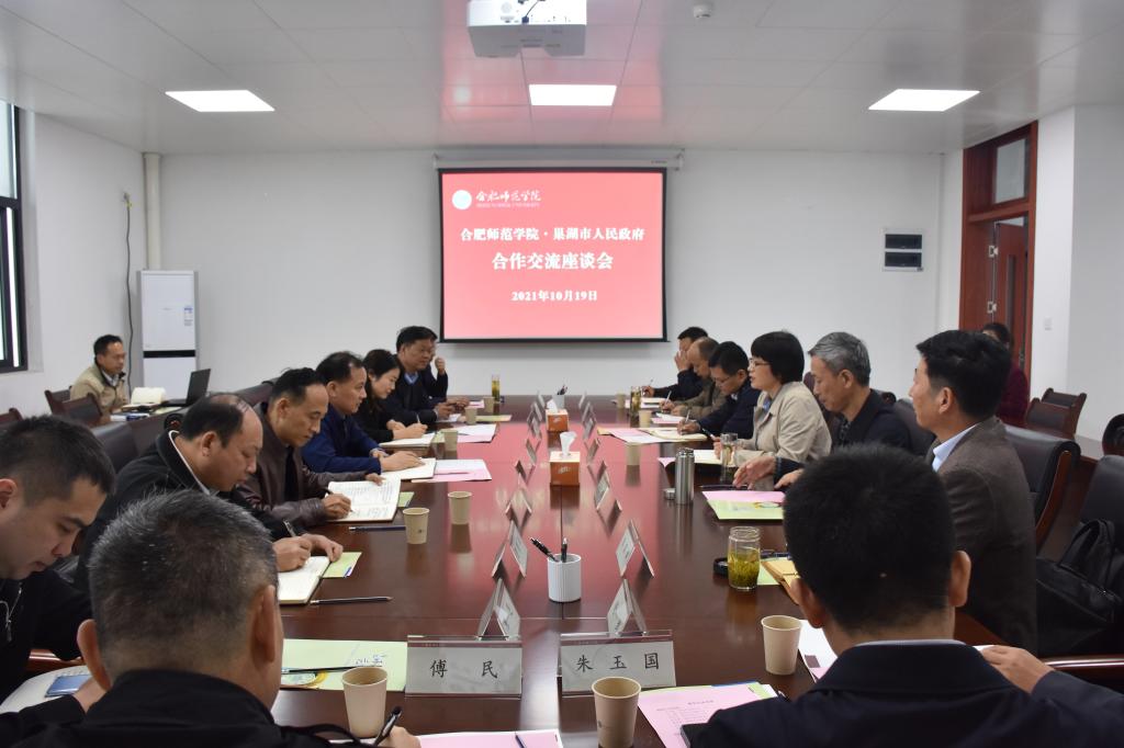 方东玲对汪功胜一行表示热烈欢迎,回顾了滨湖校区一期工程建设的历程,对巢湖市政府和相关部门对滨湖校区建设给予的关心支持表示感谢。同时,就滨湖校区二期工程建设、教育合作交流、服务保障配套等问题做了交流。她指出,学院的发展离不开市委市政府的大力支持,希望双方进一步加强沟通交流,深化合作共建,推动校地合作走深、走实。她表示,作为一所办学历史悠久、文化底蕴深厚的老牌师范院校,学院将进一步发挥学科专业优势,挖掘合作潜力,找准合作突破口,助力地方经济社会发展。