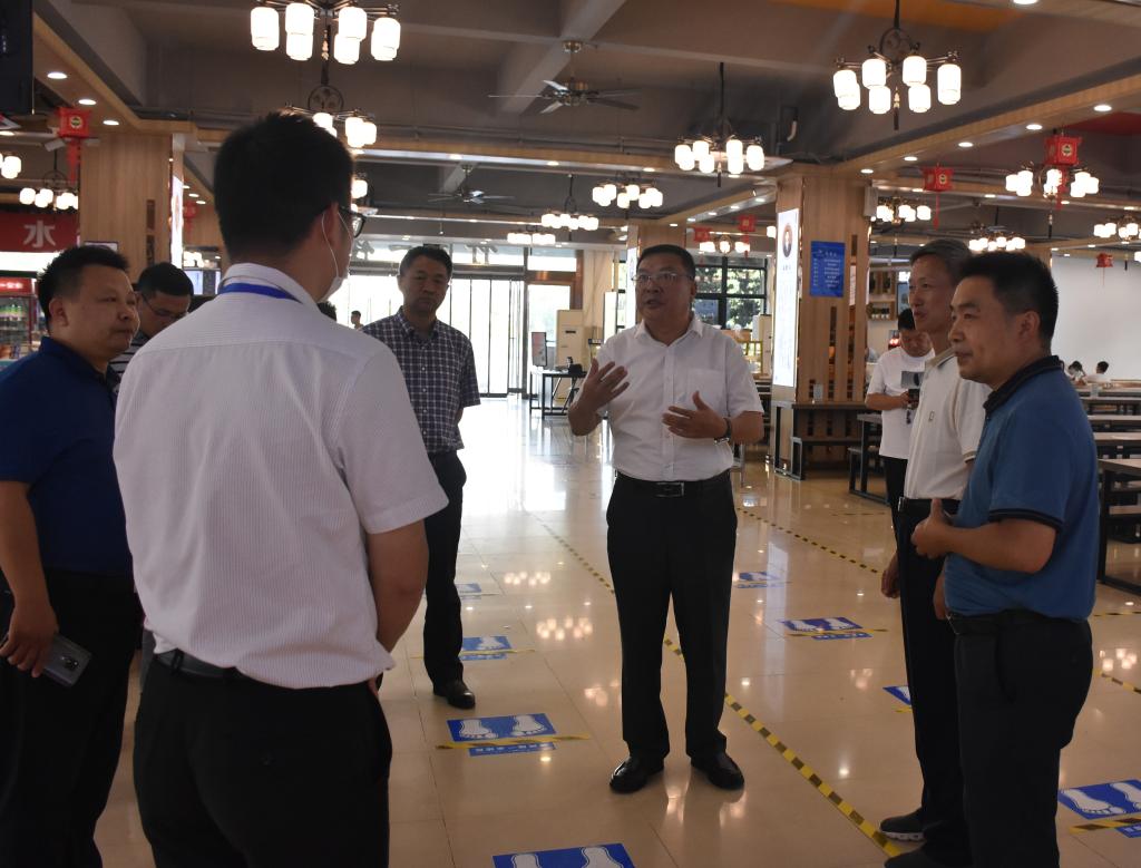 本网讯 为深入落实省委教育工委有关文件精神,消除校园安全隐患,夯实疫情防控工作,确保本学期尤其是国庆期间校园和谐稳定,9月29日,学院党委书记徐成钢、党委副书记吴昕春、副院长谢阳群分别带队深入校园开展安全与疫情防控检查,办公室、宣传部、教务处、学生工作处、后勤处、资产管理处、滨湖校区综合管理办公室、基建办、信息技术中心、保卫处负责人,以及后勤处和保卫处相关工作人员参加检查。