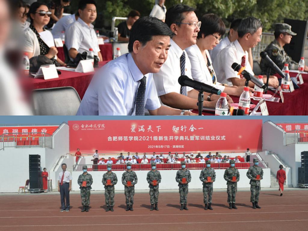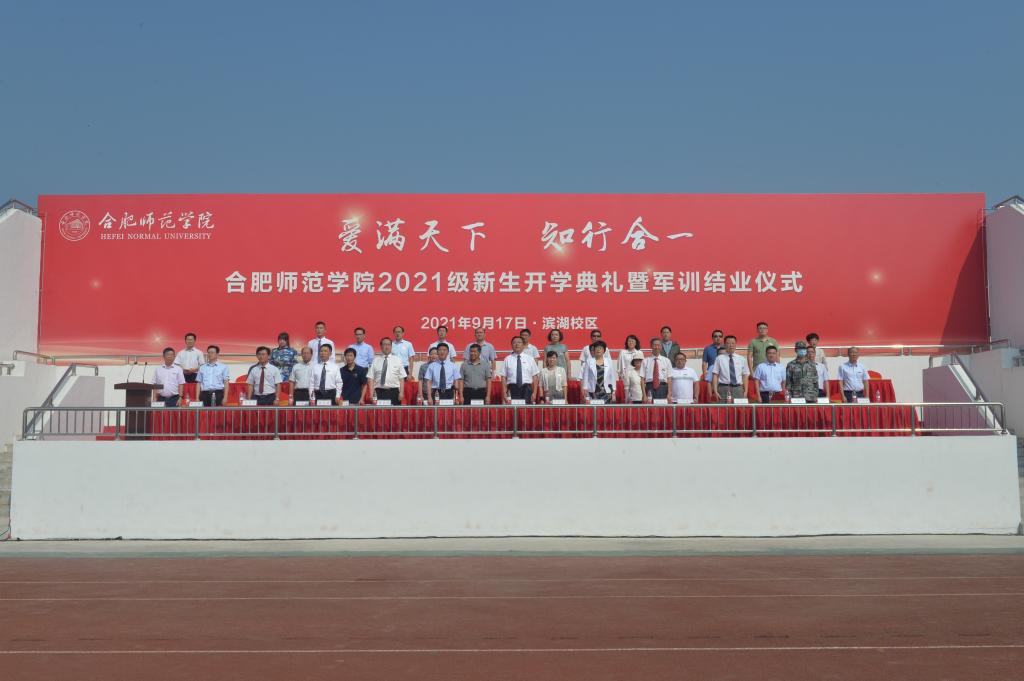 本网讯 金秋九月,硕果飘香。9月17日,学院2021级新生开学典礼暨军训结业仪式分别在滨湖校区和锦绣校区田径运动场举行。院领导徐成钢、方东玲、吴昕春、谢阳群、姚本先、曹卓良、徐文林,中国人民解放军陆军炮兵防空兵学院施训单位有关负责人,党委委员出席大会。院学生工作领导组全体成员,各二级学院党政负责同志,新生辅导员参会。大会由院党委书记徐成钢主持。