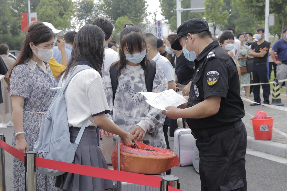 安全守护,保卫坚守初心。“不打无准备之仗”,学校保卫处早早协调好各方人员,做好安全预案与充足准备,秩序井然地迎接新生。保卫人员分布在校区各个角落,有的在校门口指挥交通;有的在校园内巡逻,为新生做好指引。此外,保卫处还联合当地交警部门协调工作,保证车辆疏通以及周围居民的出行安全。根据疫情防控要求,家长们不能陪同学生进入校园,校门口设置疫情防控通道,保卫人员认真审核学生入校的四道程序:一有录取通知书、二有48小时内核酸检测阴性报告、三有安康码、四有行程码,缺一不可。他们切实保障好学生的安全,为学生提供便利,肩负起保卫的职责。