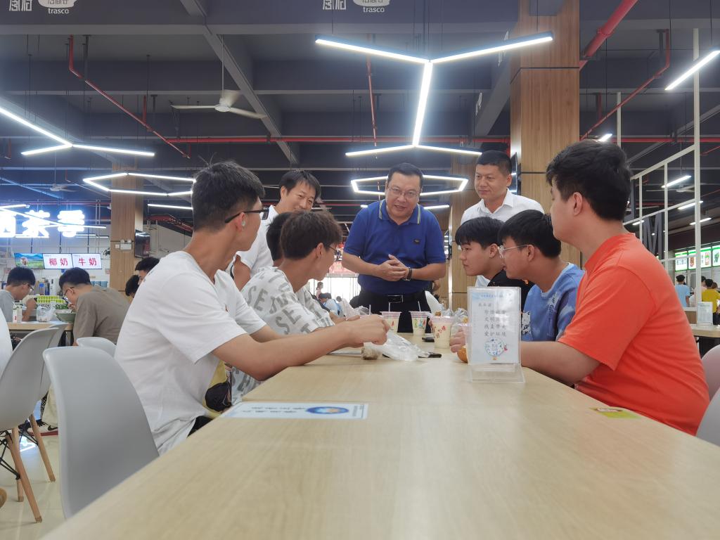 本网讯 9月4日晚,经过忙碌而有序的一天,合师滨湖校区迎来了朝气蓬勃的2021级学子,新生们第一顿吃得怎么样?第一晚住的是否习惯?新生报到后的衣食住行高度牵挂着院领导的心。9月3日和4日晚,院党委书记徐成钢、纪委书记徐文林带头驻值滨湖校区,实地调研走访、细心查看询问、应急协调处置,为新生开学保驾护航。