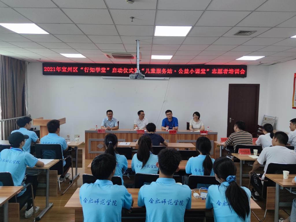 本网讯 7月19日上午,2021年宣州区“行知学堂”启动仪式暨小先生培训会在宣州区政府北楼会议室举行。宣州区副区长王剑,宣州区团区委书记王小川、副书记陈梦,各相关街道和乡镇团委负责人,院团委副书记刁文彬及指导教师、全体小先生参加会议。会议由王小川主持。