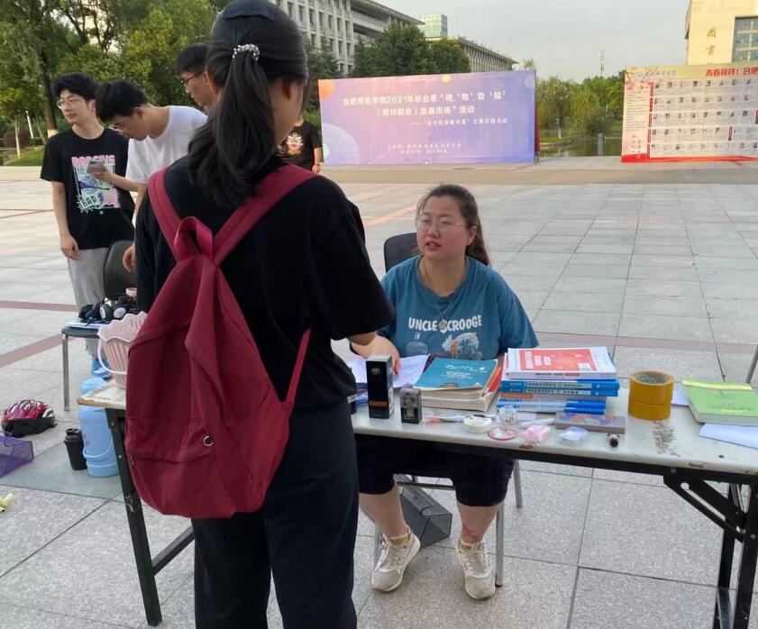 本网讯 为实现资源再利用,发扬勤俭节约的中华民族传统美德,进一步提升服务同学水平,深入开展“我为同学做件事”主题实践活动,由院团委、教务处、院学生会组织举办了2021年毕业季——“格‘物’致‘知’(教材回收)跳蚤市场”活动于6月24日至25日在锦绣校区生活广场顺利开展。