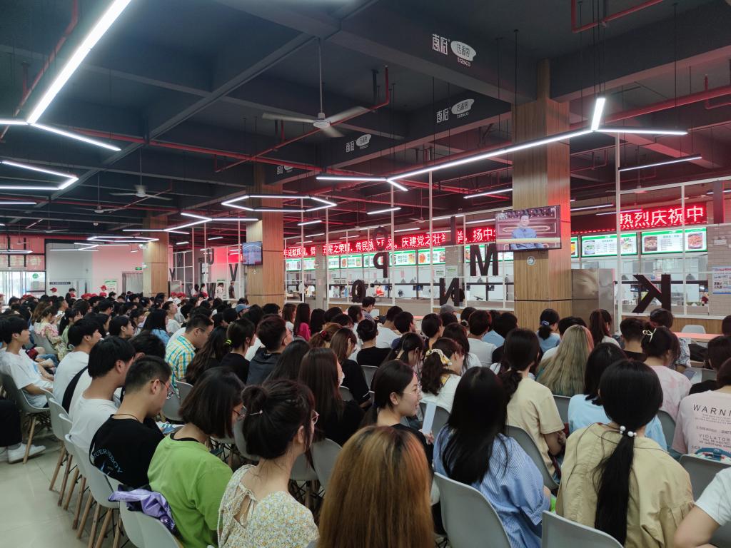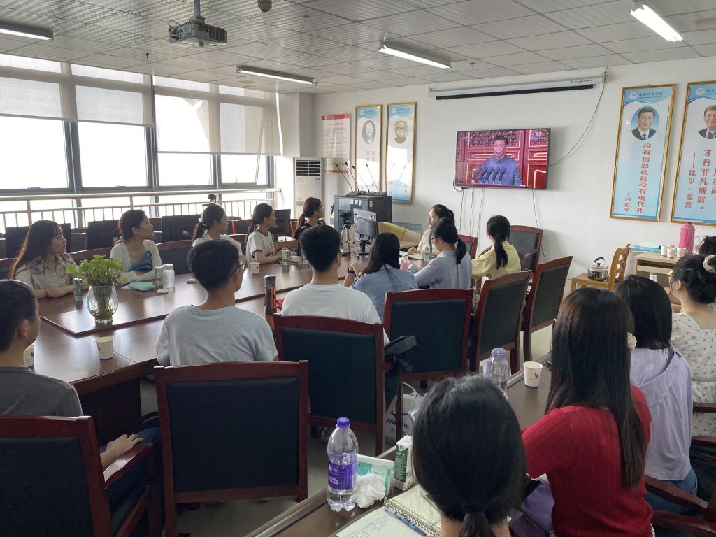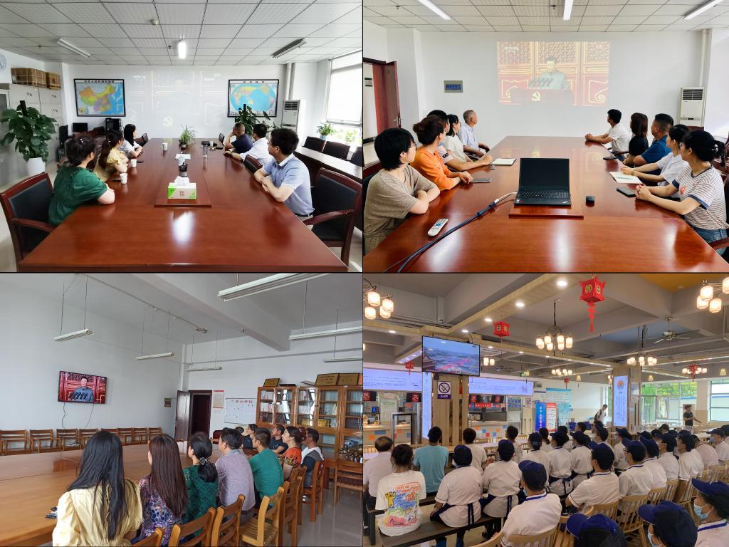 各二级学院分团委书记、辅导员代表和团员青年学生代表在学术报告厅集体收看大会盛况。各单位部门组织师生在各自会议室集体收看大会盛况。后勤处组织在滨湖校区桂园餐厅一楼、锦绣校区竹园餐厅一楼集体收看大会盛况。