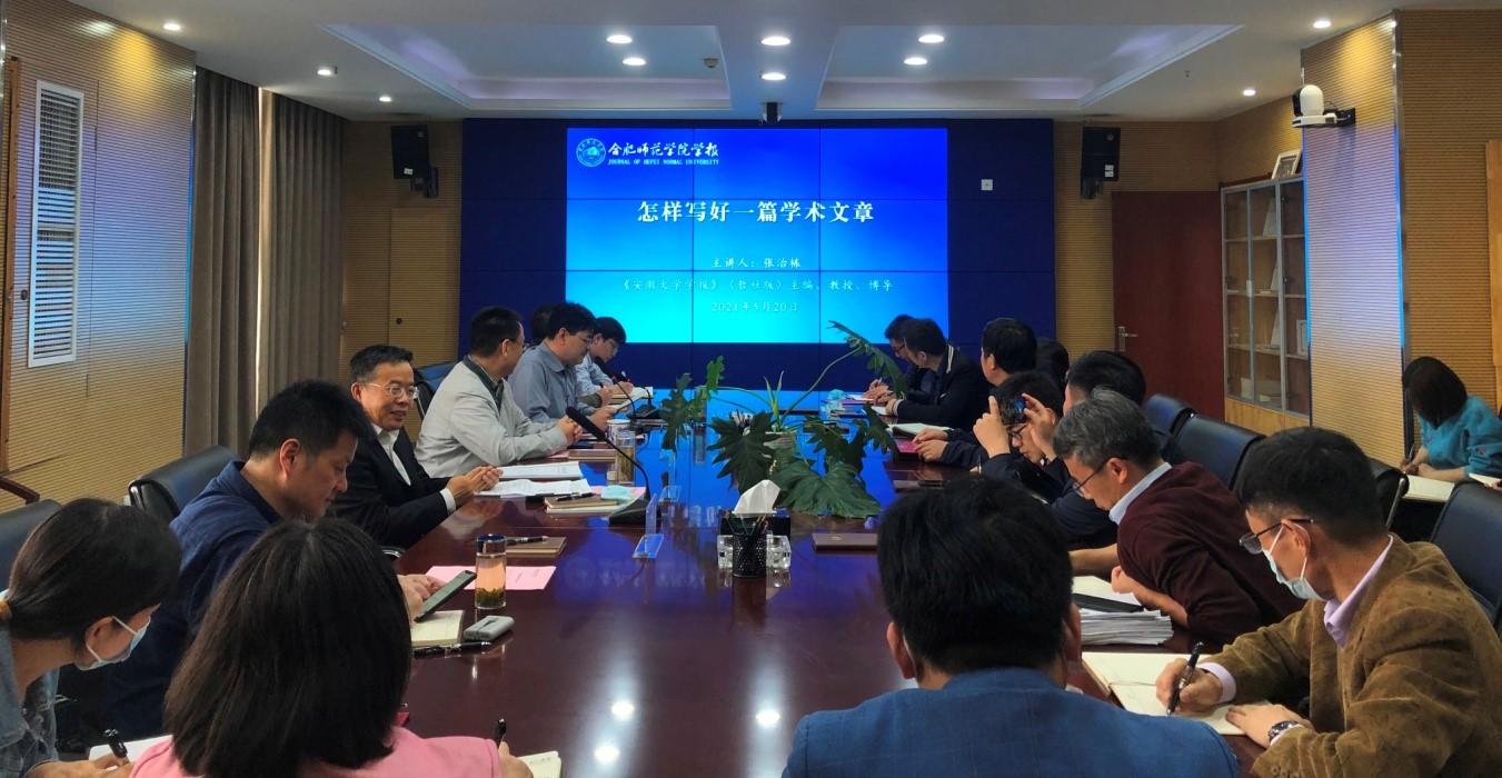 本网讯 为深入学习贯彻党的十九届五中全会精神,加强学报编辑队伍能力建设,不断提升期刊编辑质量,5月20日下午,学报编辑部在锦绣校区组织召开了编辑业务培训会。安徽省高等学校学报研究会理事长、《安徽大学学报》(哲学社会科学版)主编张治栋教授,党委委员、副院长、《太阳成集团tyc122cc入口学报》主编曹卓良教授等编委会成员出席会议。《太阳成集团tyc122cc入口学报》兼职编辑,编辑部全体人员及相关教师参加了培训会。会议由《太阳成集团tyc122cc入口学报》执行主编、编辑部主任钱立青主持。