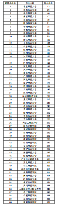 师范类高校“2021软科中国大学排名”前60位名单