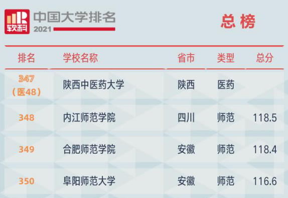 学院位列“2021软科中国大学排名”第349名