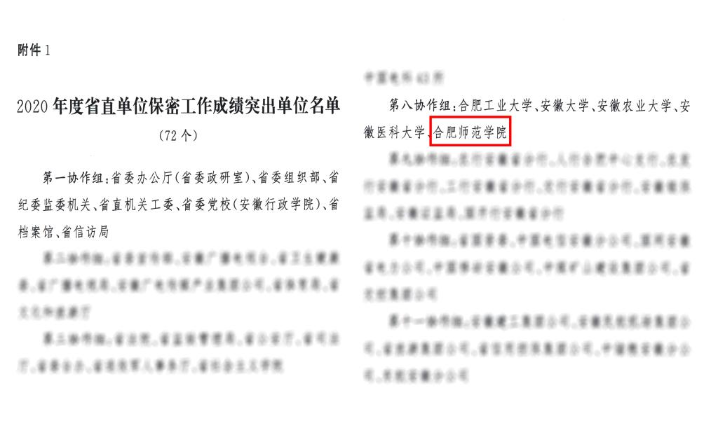 本网讯 近日,中共安徽省委保密委员会办公室、安徽省国家保密局联合印发了《关于2020年度省直单位保密工作情况的通报》(皖密办(局)通﹝2021﹞4号),通报表彰了2020年度省直保密工作成绩突出单位。在肥本科高校所在的省直保密第八协作组中,共有合肥工业大学、安徽大学、安徽农业大学、安徽医科大学和太阳成集团tyc122cc入口5家单位受到通报表彰。(校保密办:龚晖)