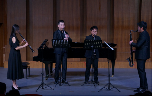音乐会在室内乐合奏《G大小弦乐小夜曲第一乐章》中拉开帷幕;女生独唱《曙色》用歌声描绘了一幅中华民族“走过长夜、走过坎坷、走进曙色”的壮丽画卷;萨克斯独奏《查尔达什》展现出一幅匈牙利人民生活的美丽民俗画面;女声独唱《我的深情为你守候》既优美婉转又慷慨激昂,表现出强烈的爱国情怀;单簧管四重奏 《阿拉贡舞曲》采用的是古典序曲与奏鸣曲式交汇的一种曲式,具有浓郁的西班牙风格;男声独唱《关雎》以朗朗上口的语句、浅显易懂的文字为我们讲述了一个爱情故事;《d小调第一钢琴三重奏》用钢琴的华丽、长笛的优雅、大提琴的伤感演奏出音乐旋律的灿烂优美;男声独唱《你赢得了诉讼》从气息、速度、高音、咬字、情感等方面将歌曲所表达的情感完美呈现;古筝重奏《翡翠》通过和弦色彩的变化和动感十足的节奏以及人声的哼唱,生动展现了西南民族风情;舞蹈《雨打芭蕉》诠释了一群花季少女,手持雨伞,欢乐戏雨的场景,尽显岭南音乐的独特韵味与妩媚旖旎的南国风光;歌曲《绣红旗》让人热血沸腾、精神振奋,歌词气势磅礴,用歌声表达了对祖国的深厚情感;竹笛独奏《竹石图》描写破岩之中的劲竹,赞颂其顽强而执着的性格、傲然挺立的品格;女声独唱《叶尔羌河》动听的旋律让现场观众领略了异域风情,也掀起了音乐会的高潮。最后,在音乐学院合唱团演唱的歌曲《如果明天就是下一生》、《我爱你中国》中,整场音乐会华美落幕。
