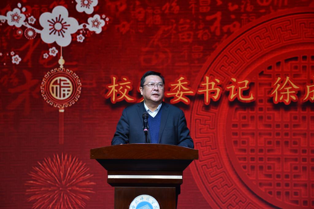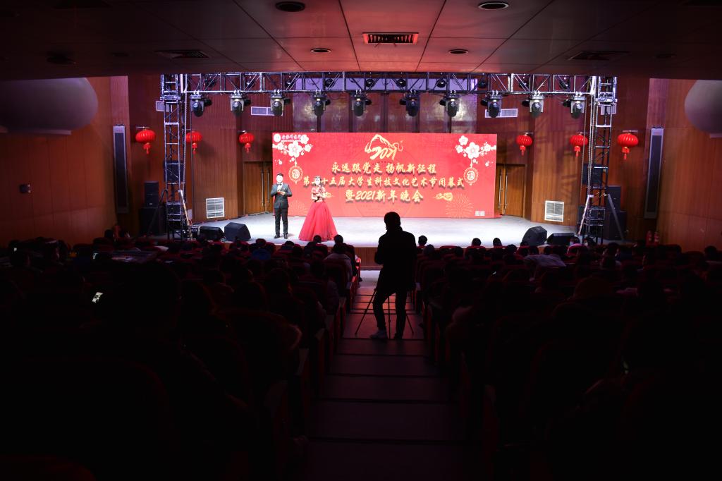 徐成钢代表学校发表了热情洋溢的新年贺词,向一年来勤奋学习、努力工作的全校师生致以美好的祝福,向精心组织、积极参与本届科技文化艺术节的老师和同学们致以诚挚的问候。他指出,2020年是学校收官“十三五”、谋划“十四五”、统筹推进常态化疫情防控与党建事业发展的不平凡之年。全校师生风雨同舟、砥砺前行,抗疫情、抓党建、促发展,各项工作取得了新的进展和成就。学校广大团学组织和青年学生在“行知学堂”、“三优”创建、创新创业等工作和中国青年志愿服务项目大赛、挑战杯、中国大学生自强之星等活动中取得了优异成绩,展现出了昂扬风貌。新的一年,学校将坚持围绕中心抓党建,持续提升师生获得感幸福感,加快构建高质量人才培养体系,全面深化地方应用型高水平大学建设。他号召全校上下以习近平新时代中国特色社会主义思想为指导,努力用劳动筑梦、用实干圆梦,共创太阳成集团tyc122cc入口的美好未来,以扎实业绩迎接中国共产党成立100周年。