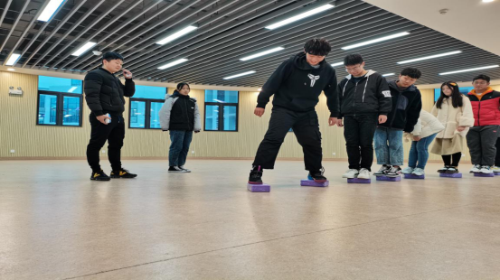 第六专题为“素质拓展与团体活动实训”主题活动,由心理健康教育中心韦小龙老师带领。韦小龙带领心理委员们体验了常见的初期团建活动“破冰”、过渡阶段的活动“解开千千结”、成熟阶段活动“搭桥过河”、结束阶段的感受分享等,通过此次团建让同学们感受到团结合作的重要性。