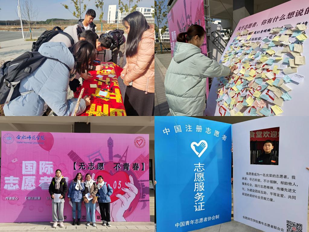 活动期间,桂园餐厅门口放置的志愿树上挂满了同学们的祝福便利贴,记载着志愿服务过程中的点点滴滴。同学们也自发录制了视频祝福,共同祝愿志愿者们十二五国际志愿者日快乐。与此同时,合肥市全民健康中心、合肥市体育局、合经区莲花社区明珠居委会、黄麓镇中心小学少年宫等志愿服务合作单位也通过录制视频等形式祝福合师青年志愿者们节日快乐。