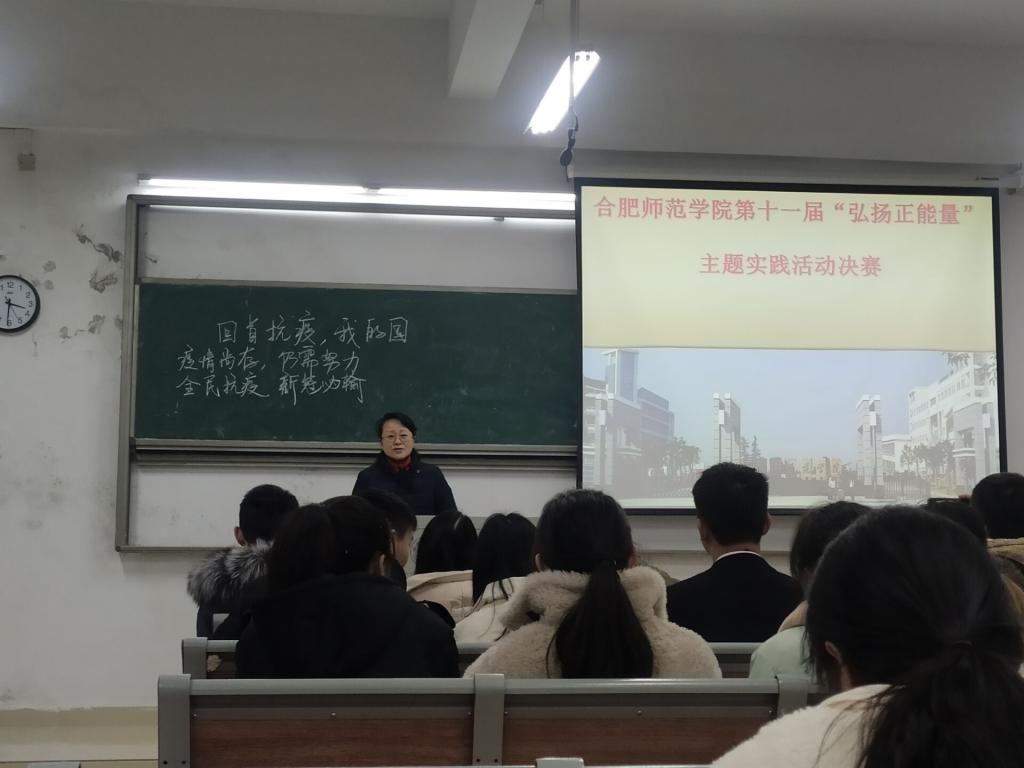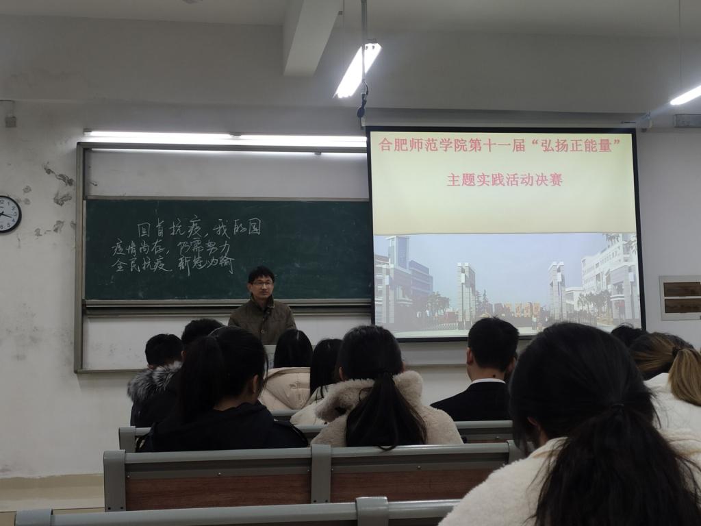 本网讯 为贯彻落实全国高校思想政治工作会议精神和习近平总书记“3.18”重要讲话精神,推进思想政治理论课教学改革,12月9日下午,以“抗疫:我眼中的中国”为主题的太阳成集团tyc122cc入口学院思想政治理论课第十一届“弘扬正能量”主题实践活动决赛在滨湖校区博学楼A206教室举行。本次活动由就业创业工作处、教务处、团委、宣传部以及马克思主义学院等单位负责人担任评委。
