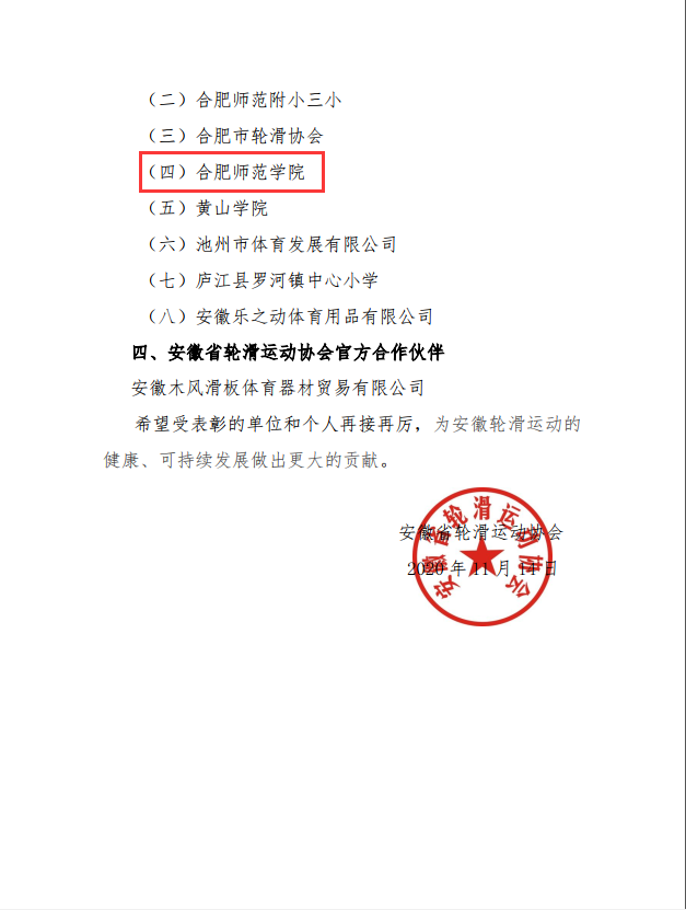 我院获评安徽省轮滑推广单位