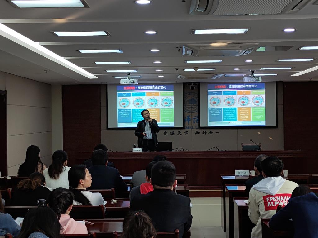 尤业字教授就靶向肿瘤细胞膜磷酰丝氨酸的抗肿瘤纳米药物、靶向肿瘤细胞膜磷酰丝氨酸的基因治疗体系、靶向肿瘤细胞膜磷酰丝氨酸的基因编辑系统进行了详细的介绍,并对这些领域当前的研究热点、面临的问题和取得的成果进行了阐述和分析。(科研处:刘泽恒)