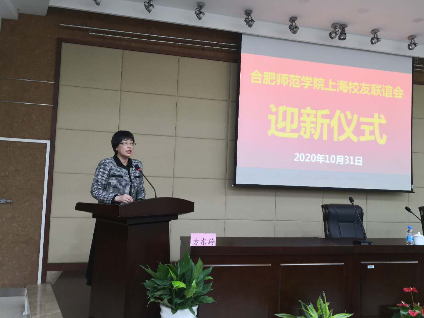 方东玲作大会致辞。她代表学校热烈祝贺迎新仪式的成功举办,感谢为筹办会议辛勤付出与无私奉献的校友们。她希望新校友尽快融入上海,以老校友为标杠,勤奋工作,扎根上海,建功立业。她向校友们介绍了学校2020年招生、申硕、一流专业建设、师范专业认证、地方高水平大学建设、滨湖校区后期建设等相关情况,希望上海校友会进一步发挥平台作用,充分挖掘和凝聚校友资源,促进校友与母校更多的合作;希望上海校友一如既往地关心、支持和帮助母校,为母校“十四五”发展贡献智慧和力量。她表示学校将进一步加强校友工作,努力为校友做好服务,支持校友的事业进步。