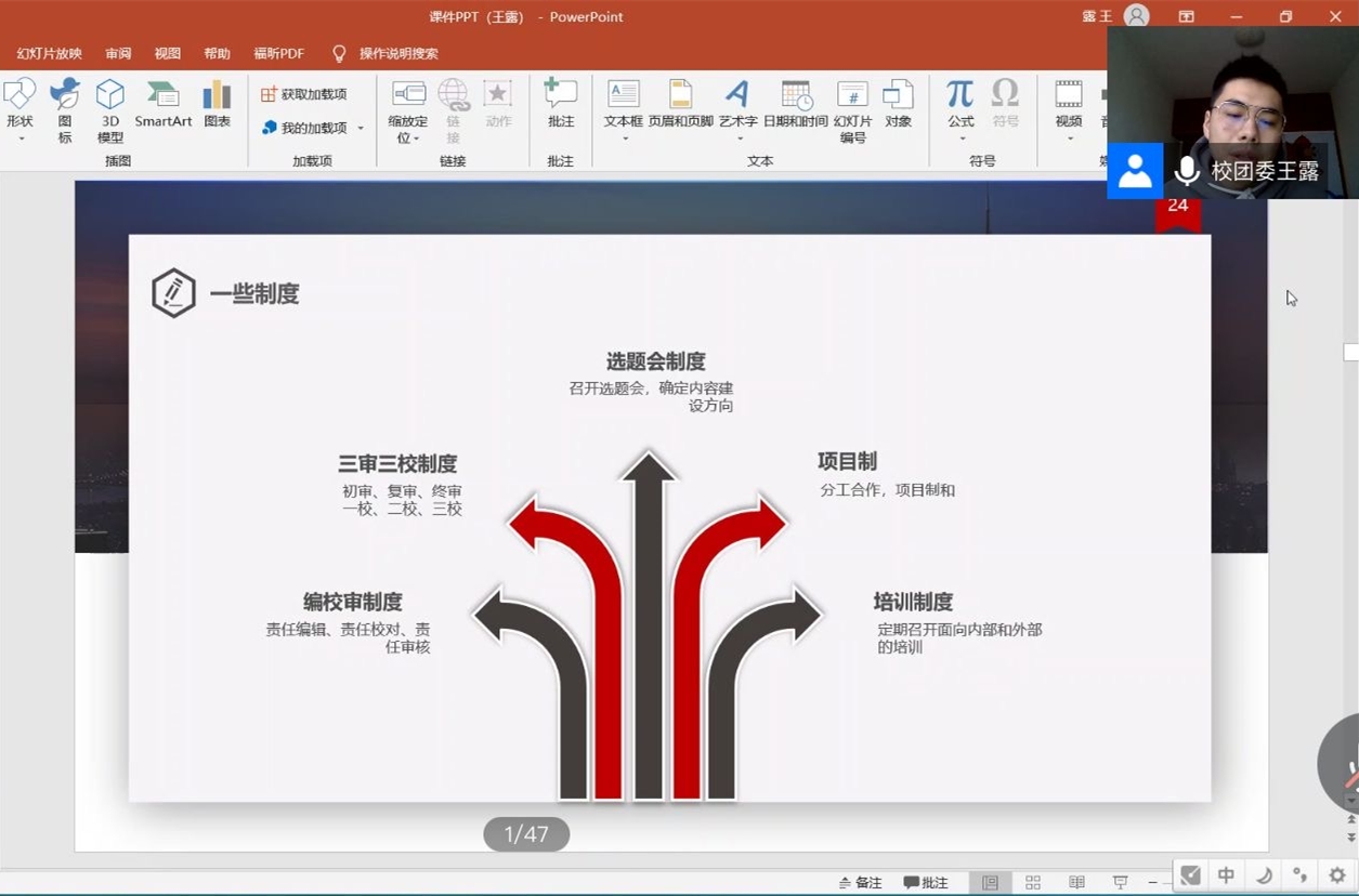 为确保培训稳步有序推进,保障学员参训效果,培训采取线上与线下相结合、理论与实践相结合的方式开展。在24日上午依托腾讯会议举办的开班仪式上,校团委宣传思想部负责人王露对培训背景、培训内容进行介绍,对培训纪律做出要求,并以《青年新媒体的建设与发展》为题,从文件学习、青年新媒体平台建设和运营思路、青年新媒体工作者的必备素养、青年新媒体宣传的舆情控制五个方面开讲“第一课”。24日下午及25日上午,合师青年传媒中心主任团成员、部长团成员从工作经验出发、结合案例教学,围绕青年新媒体平台建设、团队管理,微信推文制作、抖音视频拍摄等方面分享、交流经验。