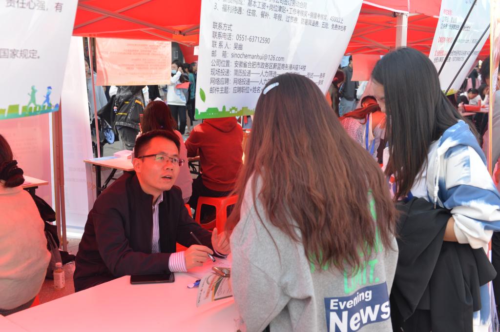 本网讯 为贯彻落实“六稳”“六保”决策部署,统筹推进疫情防控和毕业生就业工作,积极适应疫情防控常态化下的就业形势,搭建好用人单位与毕业生线下面对面交流的平台,10月23日下午,学院在锦绣校区生活广场举办2021届毕业生就业秋季线下双选会,吸引了来自省内外的176家用人单位前来,党委副书记、院长方东玲,党委副书记、副院长李进华,党委副书记吴昕春,副院长谢阳群、曹卓良等院领导和各二级学院党政负责同志出席,来自锦绣校区、三孝口校区的上千名毕业生在辅导员的带领下参加了双选会。