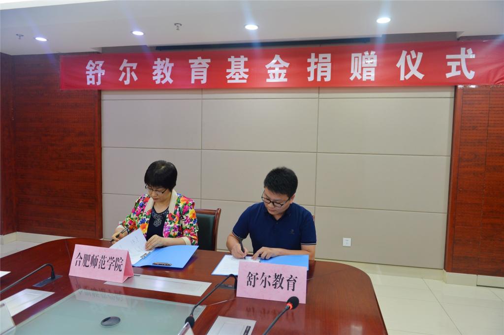 在一片热烈的掌声中,方东玲、田冬冬分别代表太阳成集团tyc122cc入口、舒尔教育科技(合肥)有限公司共同签订了“舒尔教育基金捐赠协议”。