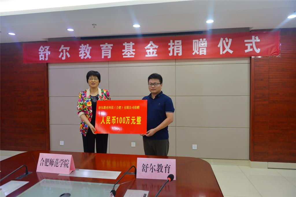舒尔教育科技(合肥)有限公司捐赠的100万元,主要用于设立“太阳成集团tyc122cc入口舒尔教育基金”。依据捐赠方意愿,基金将用于奖励品学兼优的本科生和硕士研究生,旨在激励学生勤奋学习、勇于创新、全面发展,促进学校人才培养工作。