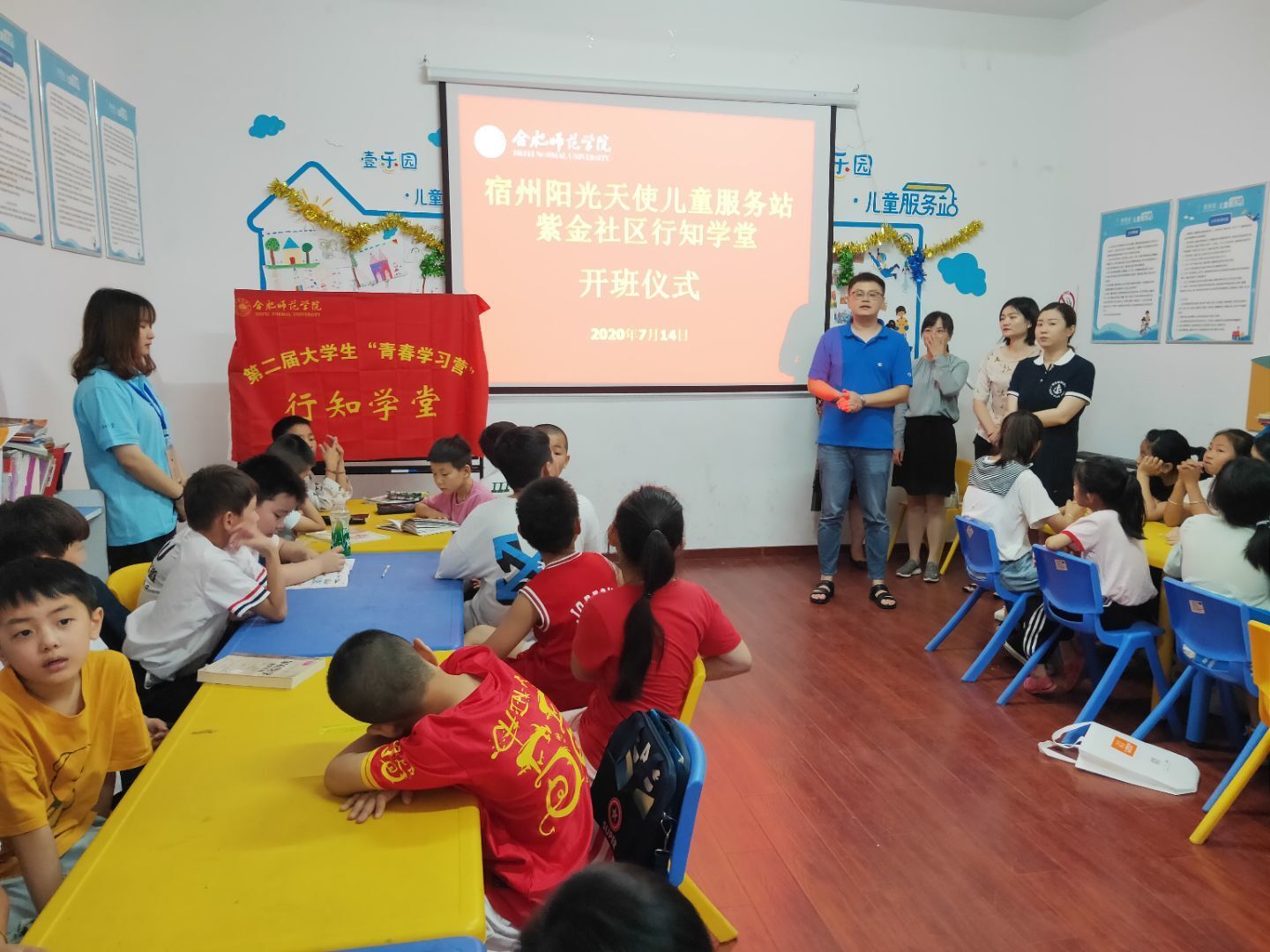 7月14日上午,第二届大学生“青春学习营”行知学堂在宿州市经开区紫金社区举行开班仪式。团宿州市委、宿州阳光天使儿童服务站等相关负责人和我院相关人员、小学员及家长参加仪式。刁文彬对紫金社区对我院“行知学堂”实践活动顺利开展提供的支持,对于家长给予的信任表示感谢,并表示将在确保安全的基础上,努力开展好各项活动,让孩子们学有所获,度过一个充实有意义的暑假。宿州阳光天使儿童服务站站长许春华作为本次学堂的承办单位对我院大学生志愿者牺牲假期时间,服务家乡留守儿童给予积极评价,并表示做好保障工作。物理与材料工程学院2019级刘畅同学作为“小先生”代表发言,表示会继承和发扬行知精神,遵守安全第一的原则,共同努力让同学们度过一段“彩色”的学堂时光。