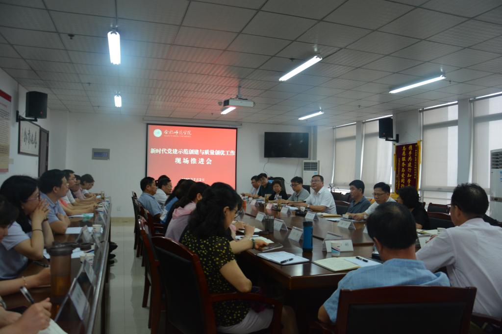 徐成钢强调,党建示范创建和质量创优是提升学院党建工作质量的重要抓手、有效载体和关键内容。召开这次现场推进会,是我院各级党组织、党员干部学习贯彻落实习近平总书记在主持中共中央政治局第二十一次集体学习时重要讲话精神的具体行动。全院各级党组织要自觉用党的科学理论指导党的组织建设,贯彻落实好新时代党的组织路线,不断把党建设得更加坚强有力。各级党组织和广大党员干部要进一步强化责任担当,在认识上再深化。深刻理解党建示范创建和质量创优工作是践行新时代党的组织路线,不断把党建设得更加坚强有力的必然要求,是强化党的政治建设,落实新时代党建工作总要求的实际行动,是加快质量建设,提升基层党建工作水平的有效举措。要进一步完善机制体制,在引领推动上再加力。大力推动党建示范创建和质量创优,在推进上突出常抓不懈;执行上突出从严从实;保障上突出优化体系,把标杆院系、样板支部创建过程中的好做法、好经验,运用好、坚持好,推动形成长效机制,以创建培育的成效引领推动基层党建不断发展。要进一步做实品牌引领,在建设成效上再提升。紧扣目标任务,坚持问题导向,抓住关键,破解难题,注重总结凝练,强化学习交流,拓展推广途径,一步一个脚印推进工作落实,以饱满的激情、优异的成绩奋力开创学院党建和事业发展新局面。