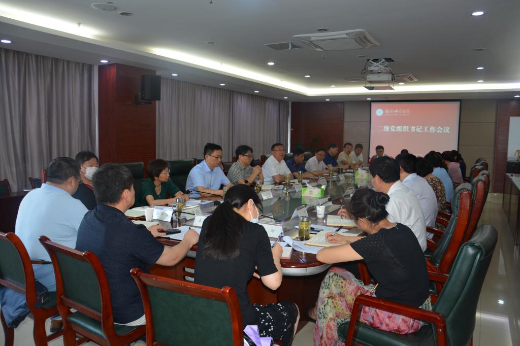 本网讯 6月17日上午,学院在锦绣校区行知楼第二会议室召开二级党组织书记工作会议,部署近期基层党建和思想政治工作。院党委书记徐成钢出席会议并讲话,各二级党组织书记,组织部、办公室、纪委办、宣传部、团委、学生工作部、保卫处等部门负责人参加会议。会议由院党委副书记吴昕春主持。