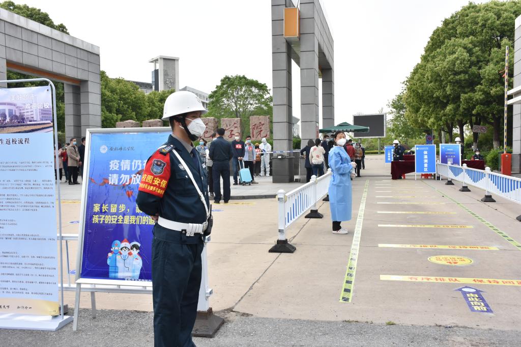 本网讯 4月27日下午,学院在锦绣校区组织开展2020年春季学期学生返校应急处置模拟演练。党委书记徐成钢,党委副书记、副院长李进华,党委副书记吴昕春,副院长谢阳群,副院长姚本先,副院长曹卓良,纪委书记徐文林,学院疫情防控工作领导小组相关职能部门负责人,二级学院分党委(党总支)书记、副书记到场观摩,办公室、学生工作处、后勤处、保卫处工作人员和全体辅导员100余人参与演练。