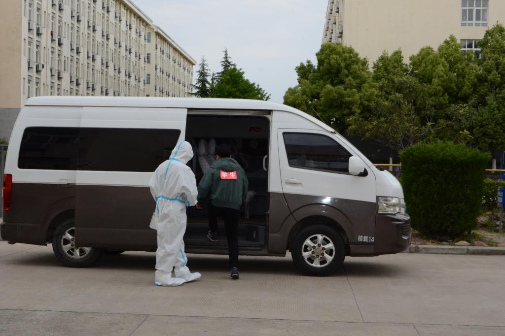 本次演练分为学生返校报到日某学生出现体温异常和返校后学生在宿舍出现体温异常两个场景。场景一由31名辅导员扮演返校学生、家长和教师等角色,体温正常学生凭学生证(校园一卡通)、安康码有序通过测温通道,并经后勤处人员专业消毒、二级学院资格复查后入校;体温异常学生由校医院医务人员在临时留观点复测体温后,登记信息并转介至定点医院,学生情况逐级上报。保卫处处长周荣就返校当天校门管理及报到流程进行汇报。