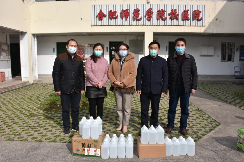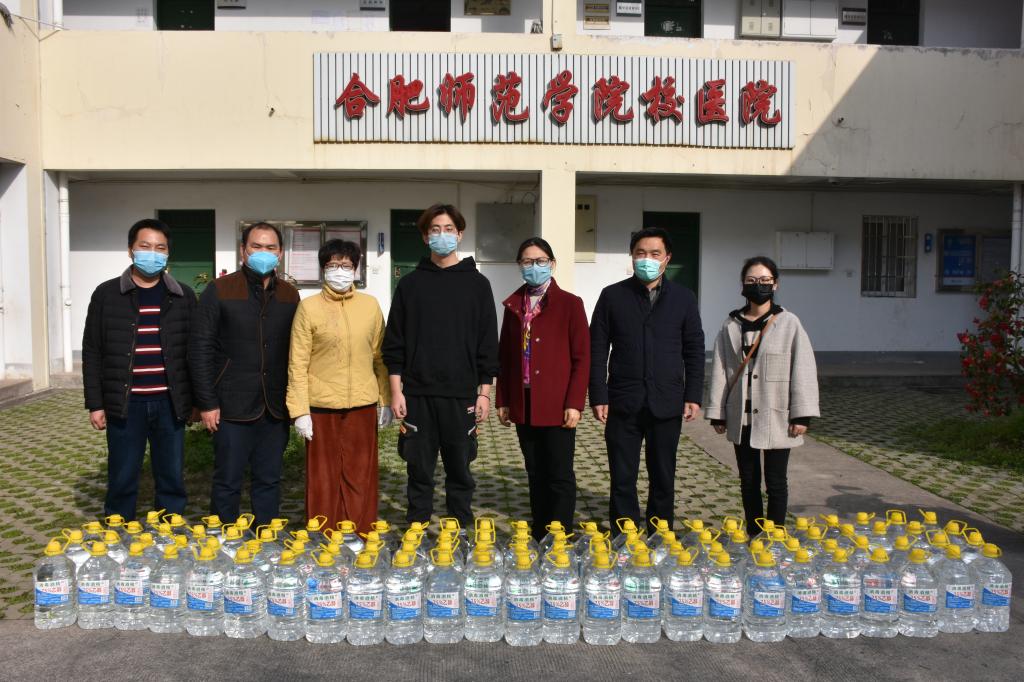 中国人寿保险股份有限公司合肥分公司捐赠75%酒精2.5L20瓶、84消毒液1.5L10瓶、免洗消毒凝胶25瓶。
