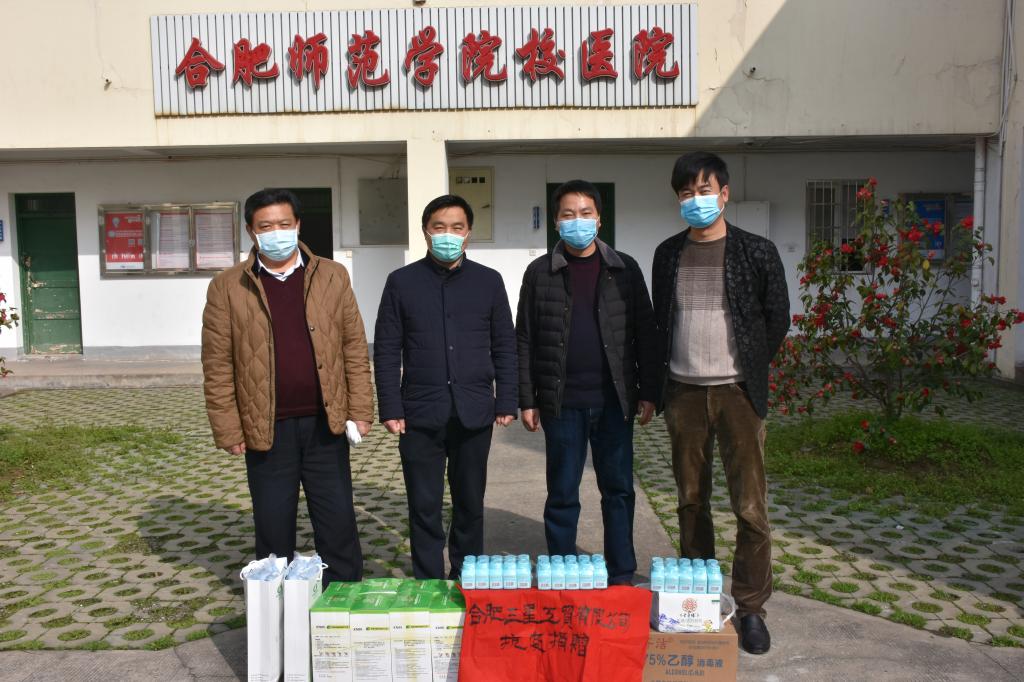 合肥三星工贸有限公司捐赠N95口罩400只、75%酒精1箱、消毒棉球30瓶、免洗手芦荟抑菌凝胶12瓶。