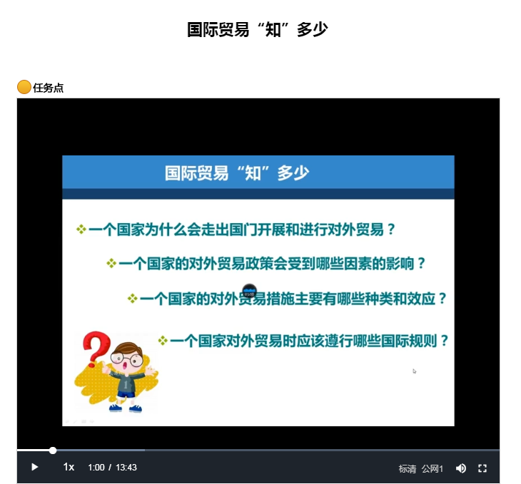 为适应线上教学的要求,我在课前做了大量的准备工作,精心设计课程内容,并克服了诸多问题,如“超星学习通”平台操作不熟悉、原有教学设计不适合线上教学特点、课程线上资料不丰富等。为此,在开课前我认真学习了“超星学习通”平台操作技巧,并提前和学生沟通测试平台效果,以确保课程的顺利进行。同时,根据《国际贸易》课程每部分不同教学内容的特点,进一步细化了在线教学任务内容,并通过提供相关阅读教材、期刊、网络短视频资料等内容来丰富学生知识的广度和深度。考虑到《国际贸易》课程是在每周一上午开课,网络可能拥堵,故提前录制了相关教学视频。同时,为了加强交流,设立了QQ课程群,以确保线上教学整体效果。