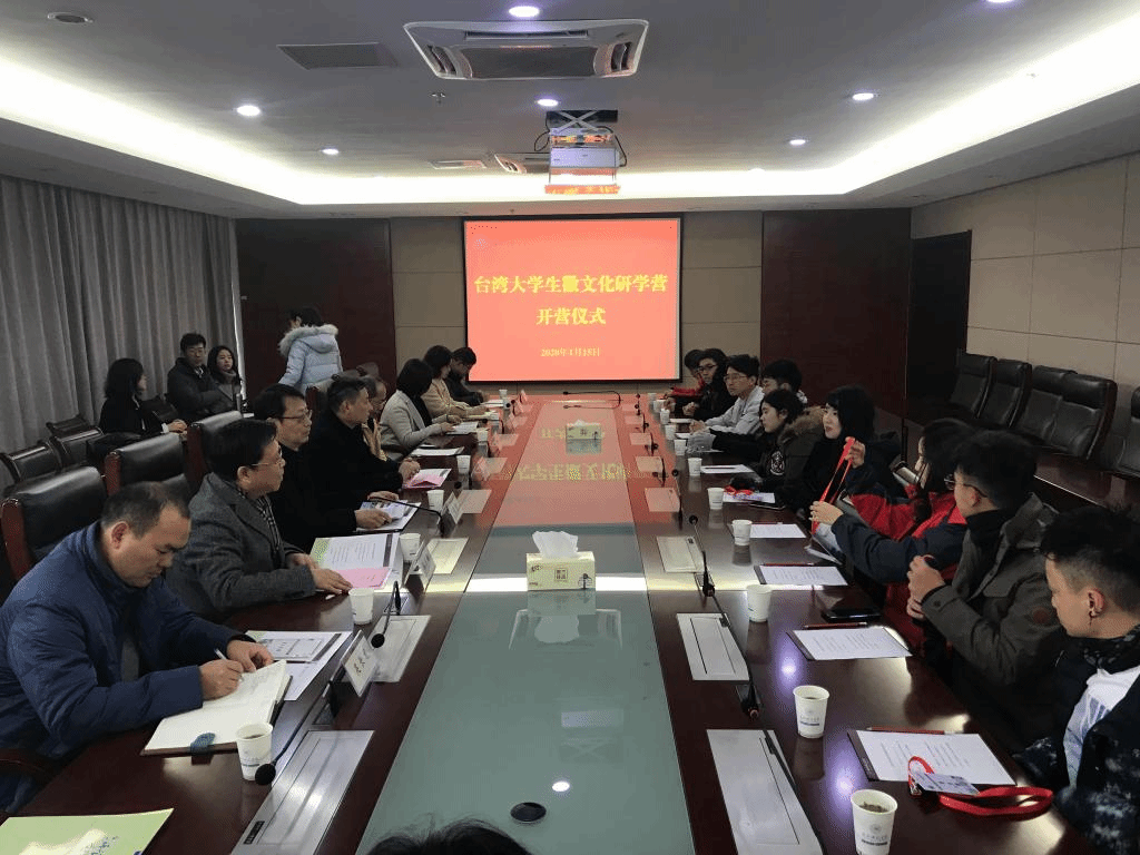 本网讯 1月15日上午,台湾大学生“徽文化”研学营在锦绣校区行知楼第二会议室隆重开营。我院党委副书记、副院长李进华,安徽省人民政府台湾事务办公室交流联络处处长裔淳、二级调研员邵琳,我院港澳台事务办公室主任张宇翔、刘铭传学院院长管琳、学生工作处处长吴长龙、教务处副处长李健,安徽海外旅游有限公司代表,中国新闻网记者以及前来参加冬令营的9名台湾铭传大学师生参加开营仪式。开营仪式由张宇翔主持。