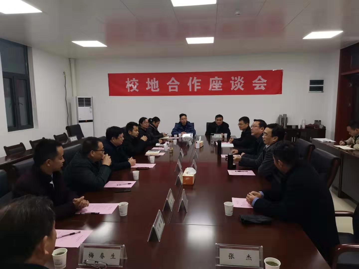 本网讯 为加强滨湖校区与驻地黄麓镇党委、政府间的合作交流,12月25日下午,学院在滨湖校区铭传楼会议室召开校地合作座谈会。黄麓镇党委书记杨华松、党委副书记、副镇长丁敏生应邀率黄麓镇党政班子一行12人参加座谈会,院党委书记徐成钢、党委副书记、院长孙道胜、后勤(基建办)党总支书记李国斌参加会议。座谈会由党委委员、统战部部长、滨湖校区综合管理办公室主任赵帮恚主持。