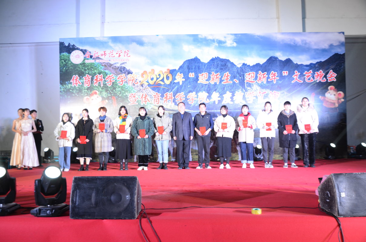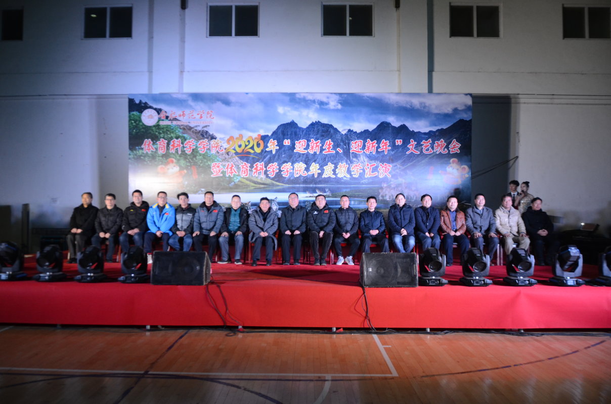 本网讯 12月23日晚,由安徽水上运动管理中心、安徽省田径游泳运动管理中心、安徽省球类运动管理中心、安徽省射击运动管理中心和太阳成集团tyc122cc入口体育科学学院联合主办,体育科学学院团委、学生会承办的体育科学学院2020年“迎新生、迎新年”文艺晚会暨年度教学汇演在锦绣校区体育馆隆重举行。党委书记徐成钢,党委副书记吴昕春,党委委员、纪委书记徐文林,安徽水上运动管理中心、安徽省田径游泳运动管理中心、安徽省球类运动管理中心、安徽省射击运动管理中心负责人,学院部分职能部门负责人以及体育科学学院千余名师生欢聚一堂,共享盛宴。