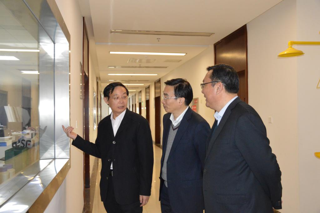 何聪陪同院领导参观了人民日报社江苏分社,介绍了人民日报社的发展历史。