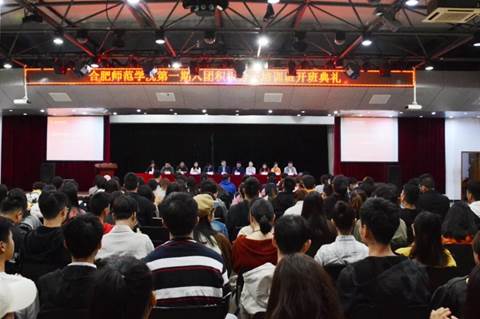 10月15日中午,培训班开班式在锦绣校区大学生活动中心举行。院团委全体人员、各二级学院分团委书记和全体学员参加开班式。开班式上,院团委副书记刁文彬介绍了培训班的背景和活动安排,并提出了认真参加学习,夯实思想基础;遵守培训纪律,保障学习质量;坚持学思结合,做到学有所获的参训要求。生命科学学院2018级食品质量与安全专业曹世林同学代表全体学员发言,表达了认真学习实践,积极向团组织靠拢的决心。