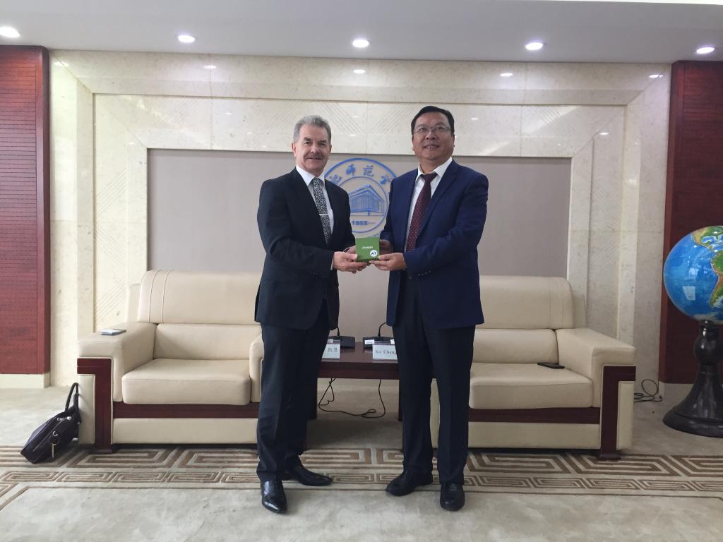 随后,孙道胜、李进华与凯恩就后续学生学习、教师交流及外教管理等合作事宜展开会谈。国际交流与合作处处长张宇翔教授、化学与化学工程学院院长董华泽教授陪同会谈。(国际交流与合作处:李靖)