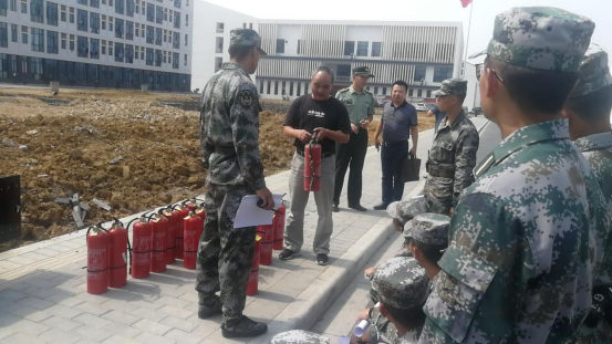 活动分为两个阶段。第一阶段,上午10:30,军训教官们在保卫处工作人员的带领和指导下对在校新生演示了灭火器的正确使用方法,并让同学们依次上场使用灭火器体验灭火过程,对新生讲解了消防基本知识和日常安全常识。