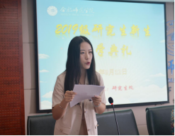 2019级新生代表刘瑞瑞同学的发言,每句话都透露着对合师的热爱,对研究生学习生涯的美好憧憬。2018级老生代表程明星以感恩、责任、成长为关键词,与学弟学妹真诚分享经验与体会。