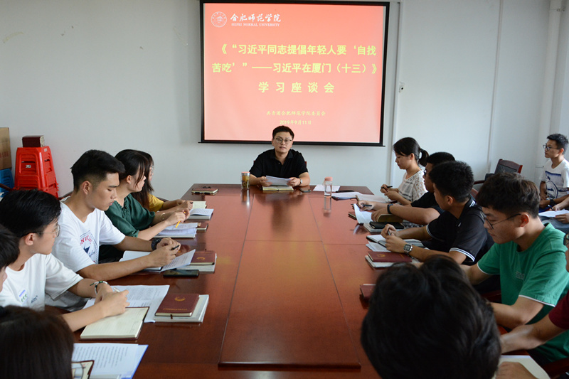 本网讯 9月11日中午,学院在行知楼召开《“习近平同志提倡年轻人要‘自找苦吃’”——习近平在厦门(十三)》学习座谈会,院团委全体人员、各团属学生组织、各二级学院学生会负责人参加会议。会议由院团委副书记刁文彬主持。