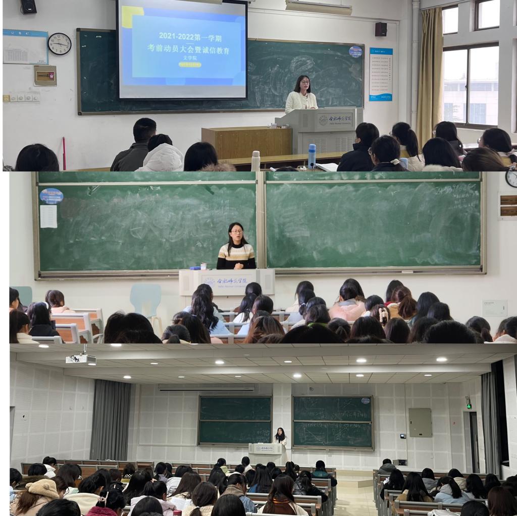 文学院党委副书记陈好也出席了部分班级的班会,他强调,期末考试在即,全院学生要高度重视,积极投身期末考试复习,遵守学校考试管理的相关规定,争取以优异的成绩为本学期画上圆满的句号。同时,加强学生安全教育,督促学生提高安全意识,如财产安全,持续防范电信网络诈骗;宿舍用电安全,杜绝使用违章电器,消除安全隐患,维护宿舍安全稳定。另外,陈好提醒大家寒假期间仍然要严格执行健康打卡制度,并要求同学们假期不要前往中高风险地区,增强疫情防控责任感,为自己的安全健康负责,为国家疫情防控工作献力。