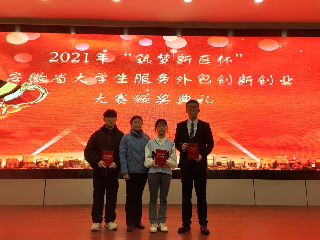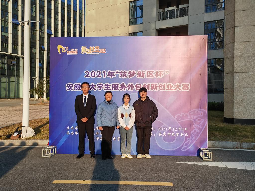 本网讯 12月4日,由安徽省教育厅主办,安徽财经大学、安庆筑梦新区管委会承办的2021年“筑梦新区杯”安徽省大学生服务外包创新创业大赛在两个多月的过程中,经过报名、初赛、现场决赛终于落下帷幕。在决赛中,由马克思主义学院傅文茹老师、合肥市第六十八中学葛守稳老师指导,陈玉钊(2019级思政班)、方媛(2019级思政班)、茌选正(2019级环境设计班)、张倩(2020级思政班)、夏文辉(2020级思政班)五位同学组成的“速速降压队”经过激烈的角逐,最终荣获省级一等奖。