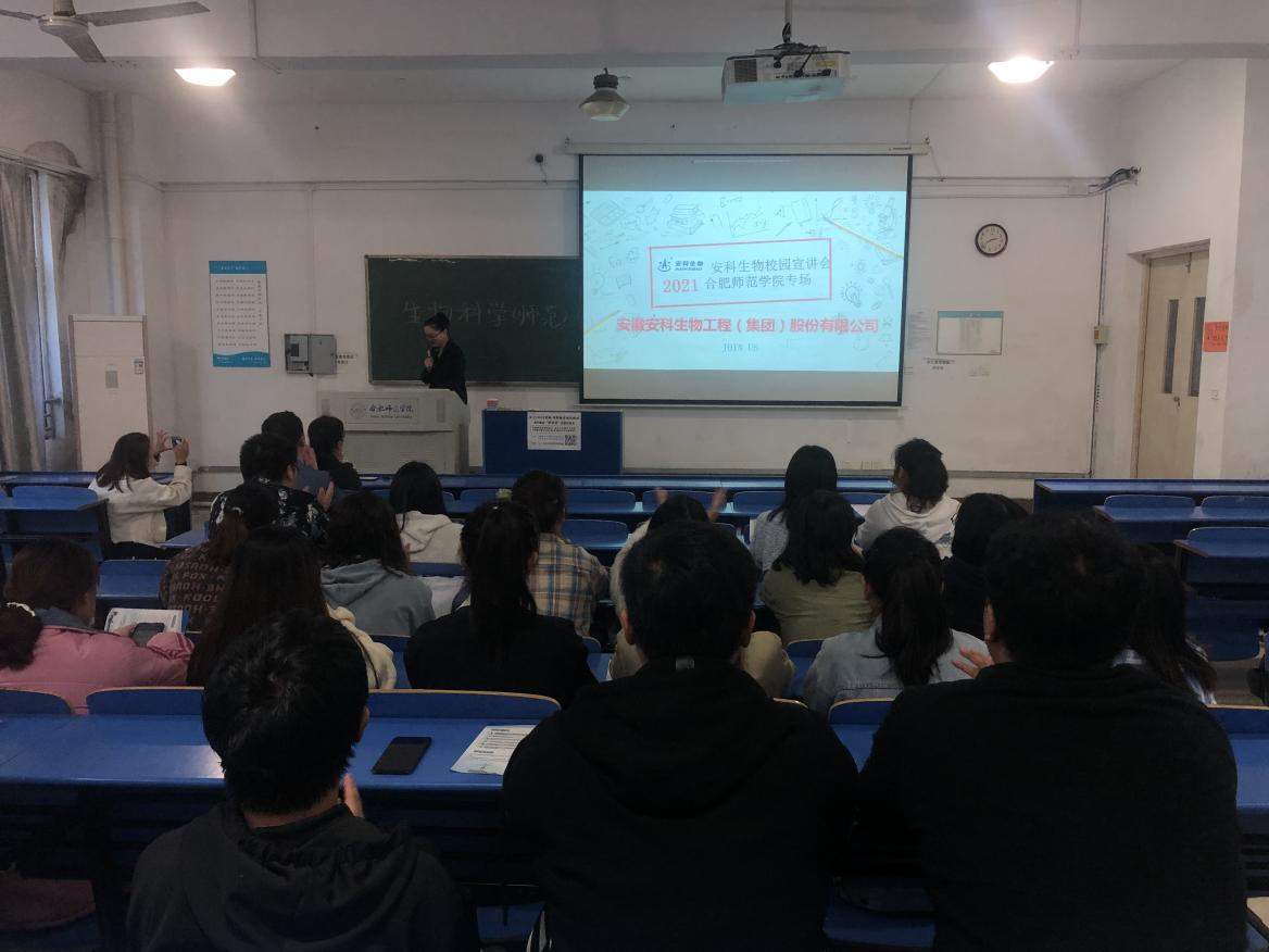 本网讯 为深入推进生命科学学院2022届毕业生就业工作,集中帮助毕业生解决就业工作中的问题困惑,生命科学学院于11月5日下午在逸夫楼A103举行了安科生物招聘宣讲会。生命科学学院党委副书记杨娜、生物技术支部书记、系主任陈金武、辅导员杨帆出席了本次宣讲会。生物技术、生物科学专业的部分毕业生参加了招聘宣讲会。