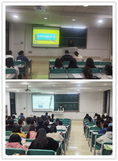 评选会上,参评班级和宿舍结合本专业的学习特点,围绕日常班级管理、宿舍学风氛围、学风典型选树、学风建设成效等方面进行精彩、详实的介绍,展示学风建设成效;富有班级和宿舍特色的专业学习小组、导师制、专业竞赛、“读书交流会”、宿舍“一对一学习帮扶制”、寝室美化大赛等一系列卓有成效的学风建设活动让大家眼前一亮,耳目一新;评委们根据PPT展示和介绍,有针对性地为班级和宿舍提出学风创建建议,班级层面突出创建举措和活动,宿舍层面突出学风氛围和团体效应。优良学风先进个人评选中,评委们结合个人评选材料,从德智体美劳多方面综合考虑,选树学风典型。