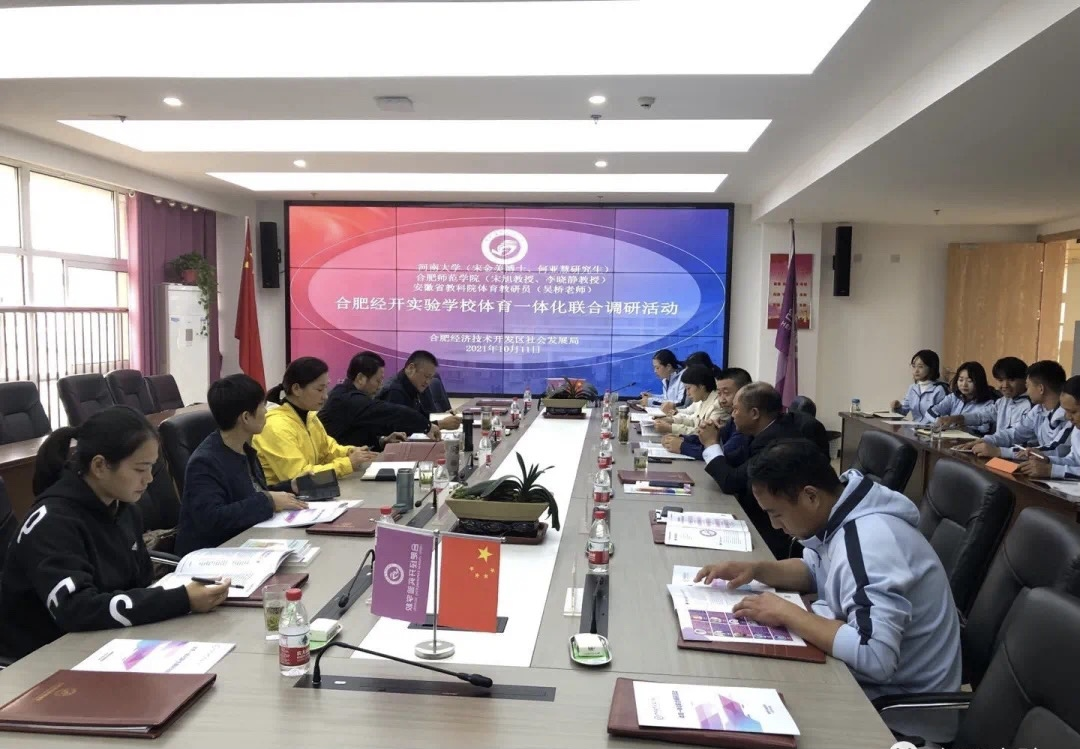 本网讯 为深化“体教融合”、推进学校体育一体化发展,促进青少年健康发展,10月11日,体育科学学院赴合肥经开实验学校参加学校体育一体化联合调研活动。河南大学体育学院博士宋金美,太阳成集团tyc122cc入口体育科学学院院长宋旭教授、太阳成集团tyc122cc入口体育科学学院李晓静教授、安徽省教科院体育教研员吴桥、合肥经开区社会发展局中心教研室主任张纪胜、合肥经开实验学校校长邵宗德、副校长刘洋等专家学者参加调研。