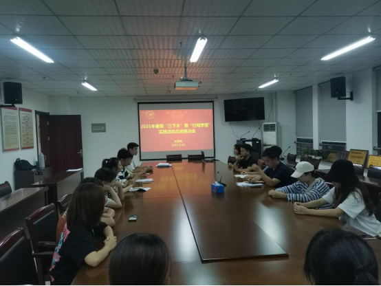 本网讯 为总结回顾2021年暑期“三下乡”暨“行知学堂”实践活动开展情况,9月11日晚,文学院在锦绣校区802会议室组织召开2021年暑期“三下乡”暨“行知学堂”社会实践活动总结座谈会。文学院党委副书记陈好,学生辅导员以及2021年参与暑期社会实践的学生代表参加了座谈会。